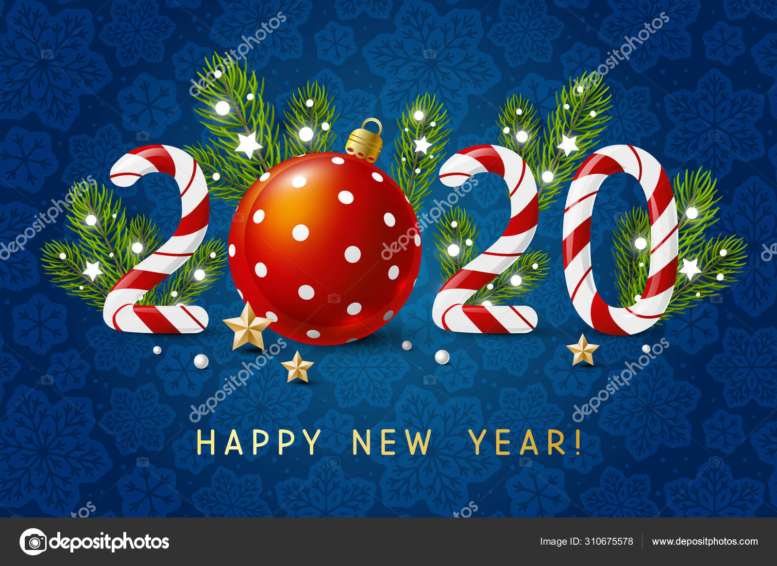 Nieuwjaar Concept 2020 Candy Nummers Met Kerst Decor Blauwe Sneeuwvlokken — Stockvector © Huhli13 #310675578