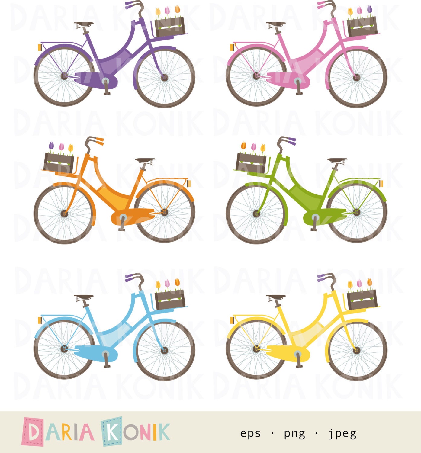 Bikes Clipart Set Bicycles Different Colors Vector Digital Etsy